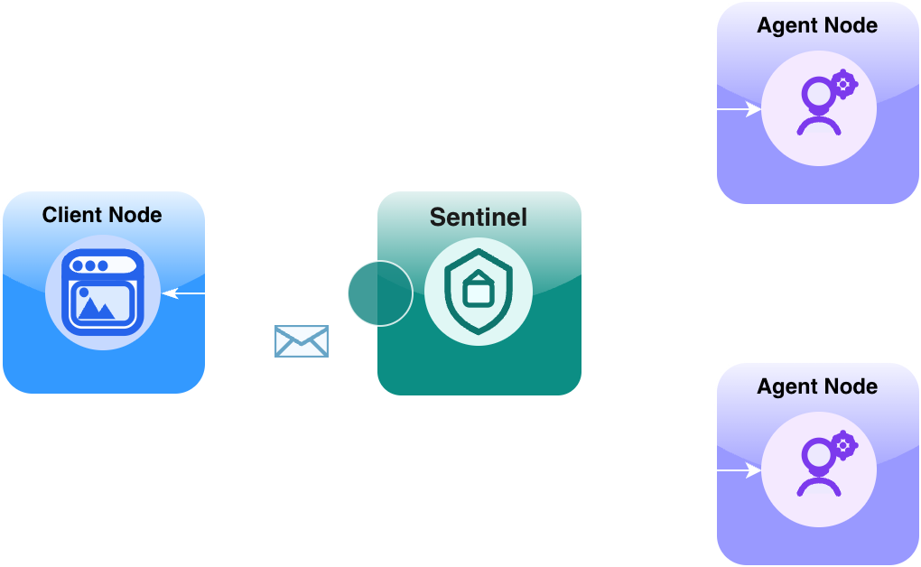 This demo keeps the behavior simple and highlights the shape: a client node in front, a sentinel in the middle, and a dedicated agent node behind it.